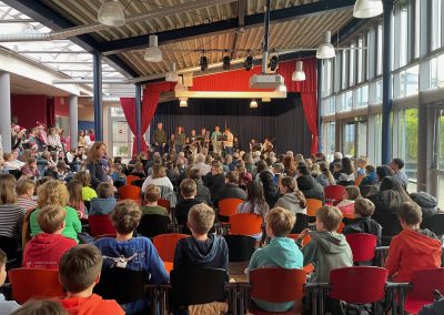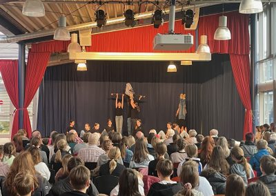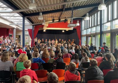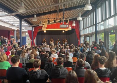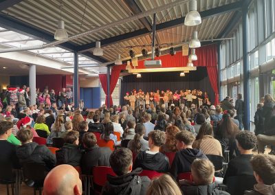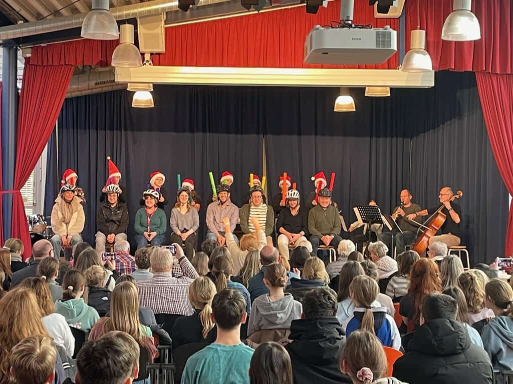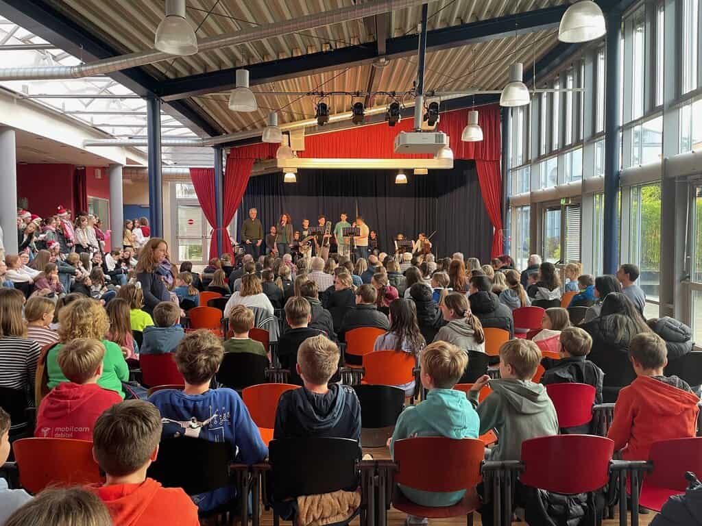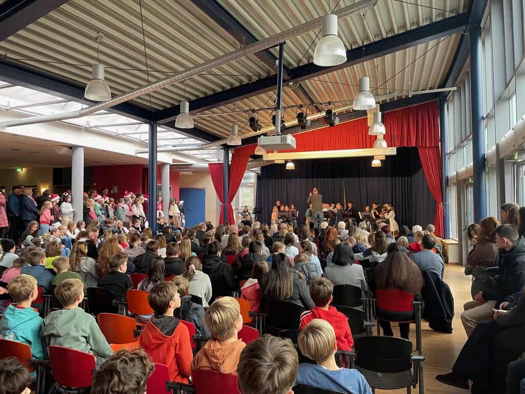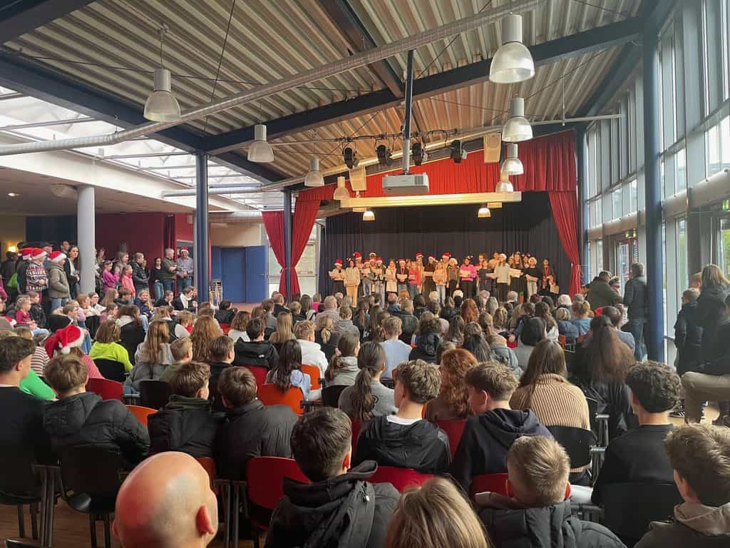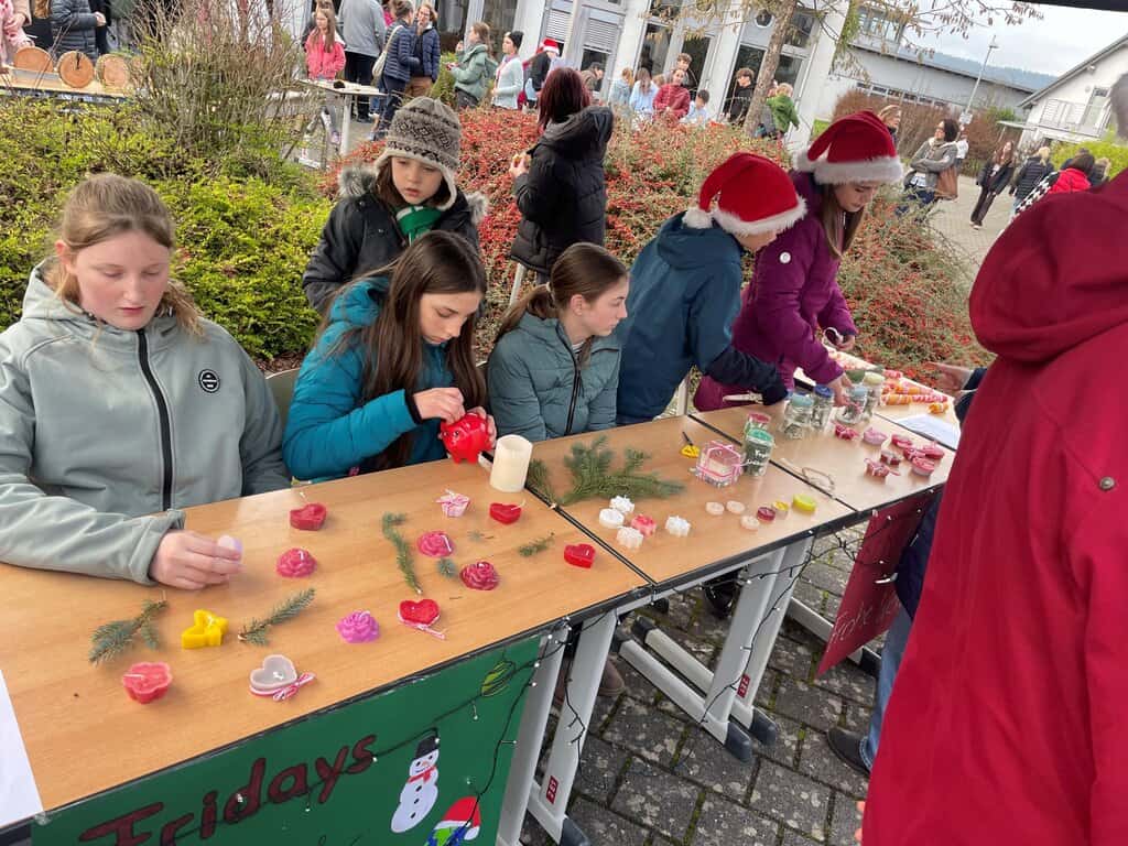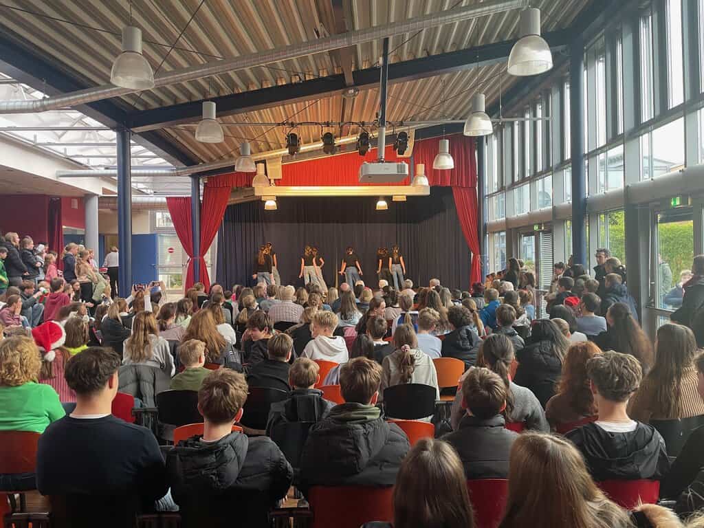 Auf dem Schulhof herrschte reges Treiben – kein Wunder bei der verlockenden Mischung aus duftendem Punsch, frisch gebackenen Waffeln und weihnachtlichen Kunstwerken. Drinnen in der Mensa sorgte ein abwechslungsreiches Bühnenprogramm für beste Stimmung: Das Schulorchester begeisterte mit klassischen wie auch modernen Stücken, die TANZ-BITS beeindruckte mit mitreißenden Choreografien, und der Schulchor wusste sogar mehrere Lehrkräfte gekonnt in seinen Auftritt einzubinden.