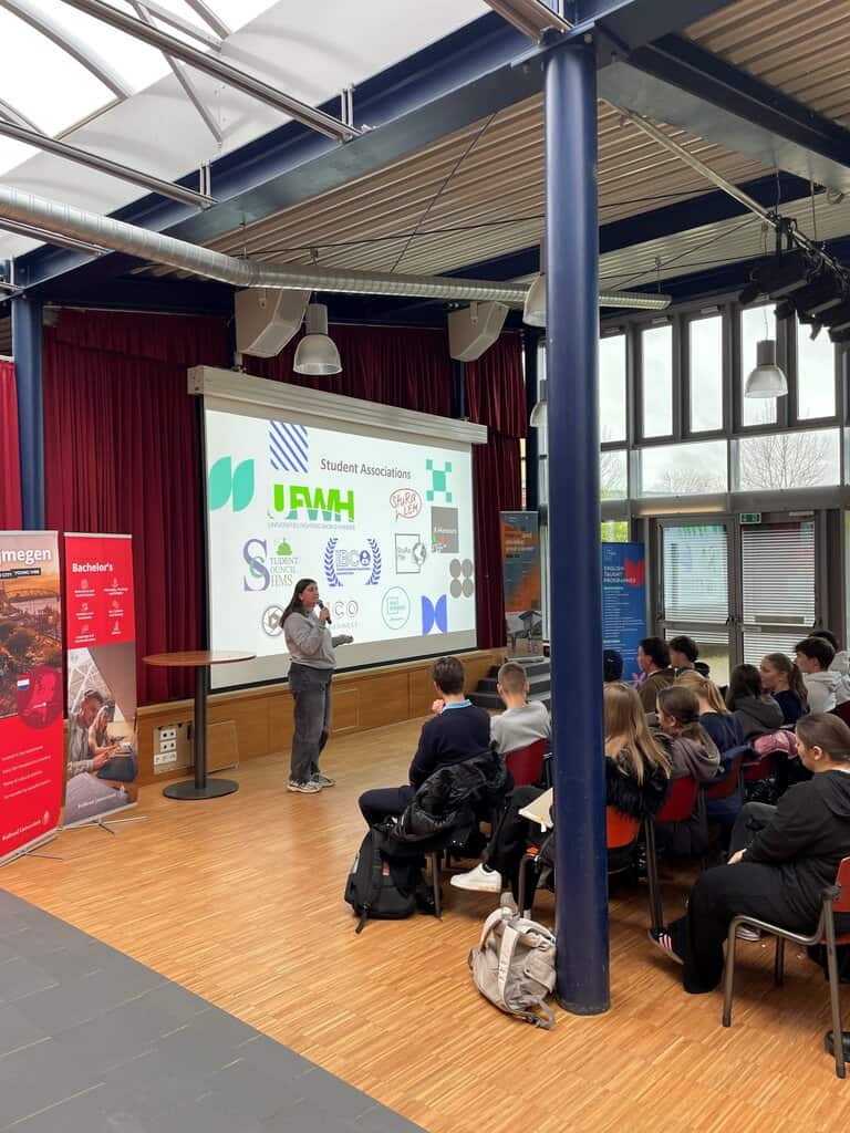 Den Auftakt machte die Radboud University in Nijmegen. Sie präsentierten das breite Fächerspektrum der Universität, berichteten von modernen Studienbedingungen und sprachen über die Vorteile eines englischsprachigen Studiengangs. Besonders wertvoll waren ihre persönlichen Erfahrungen zum Studienalltag und zur Integration ins Campusleben mit vielfältigen Sportmöglichkeiten.